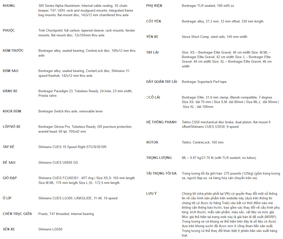 Mẫu Checkpoint ALR mới được trang bị đầy đủ để mang theo mọi thứ bạn cần, với các điểm gắn trên khung và phuộc cho phép lắp giá đèo hàng trước/sau, chắn bùn, cũng như các dòng túi chuyên dụng như Adventure Top Tube (túi ống ngang), Frame Bag (túi khung) và Triangle Bag (túi tam giác). Thêm vào đó, khung xe mới đã được tối ưu hóa để bạn có thể mang thêm nhiều nước uống ngay cả khi đã lắp đầy đủ các loại túi.