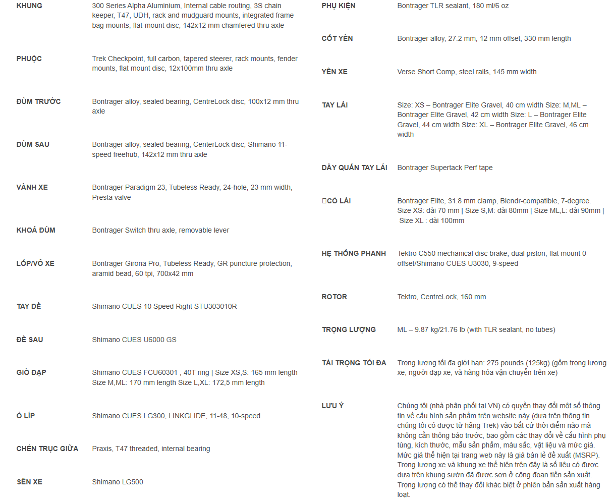 Mẫu Checkpoint ALR mới được trang bị đầy đủ để mang theo mọi thứ bạn cần, với các điểm gắn trên khung và phuộc cho phép lắp giá đèo hàng trước/sau, chắn bùn, cũng như các dòng túi chuyên dụng như Adventure Top Tube (túi ống ngang), Frame Bag (túi khung) và Triangle Bag (túi tam giác). Thêm vào đó, khung xe mới đã được tối ưu hóa để bạn có thể mang thêm nhiều nước uống ngay cả khi đã lắp đầy đủ các loại túi.