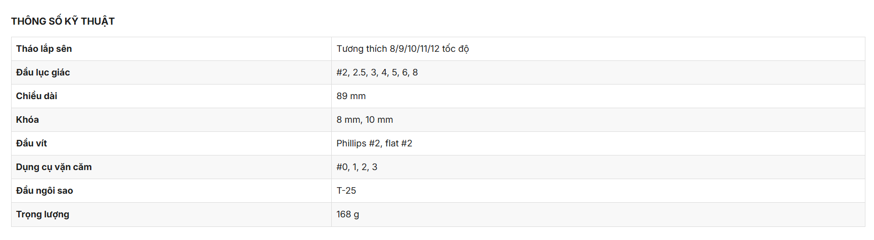 THÔNG SỐ KỸ THUẬT