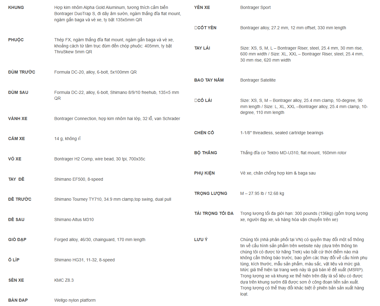 | Cỡ khung | Chiều cao người lái (cm/inch) | Chiều dài đùi trong (Inseam) |