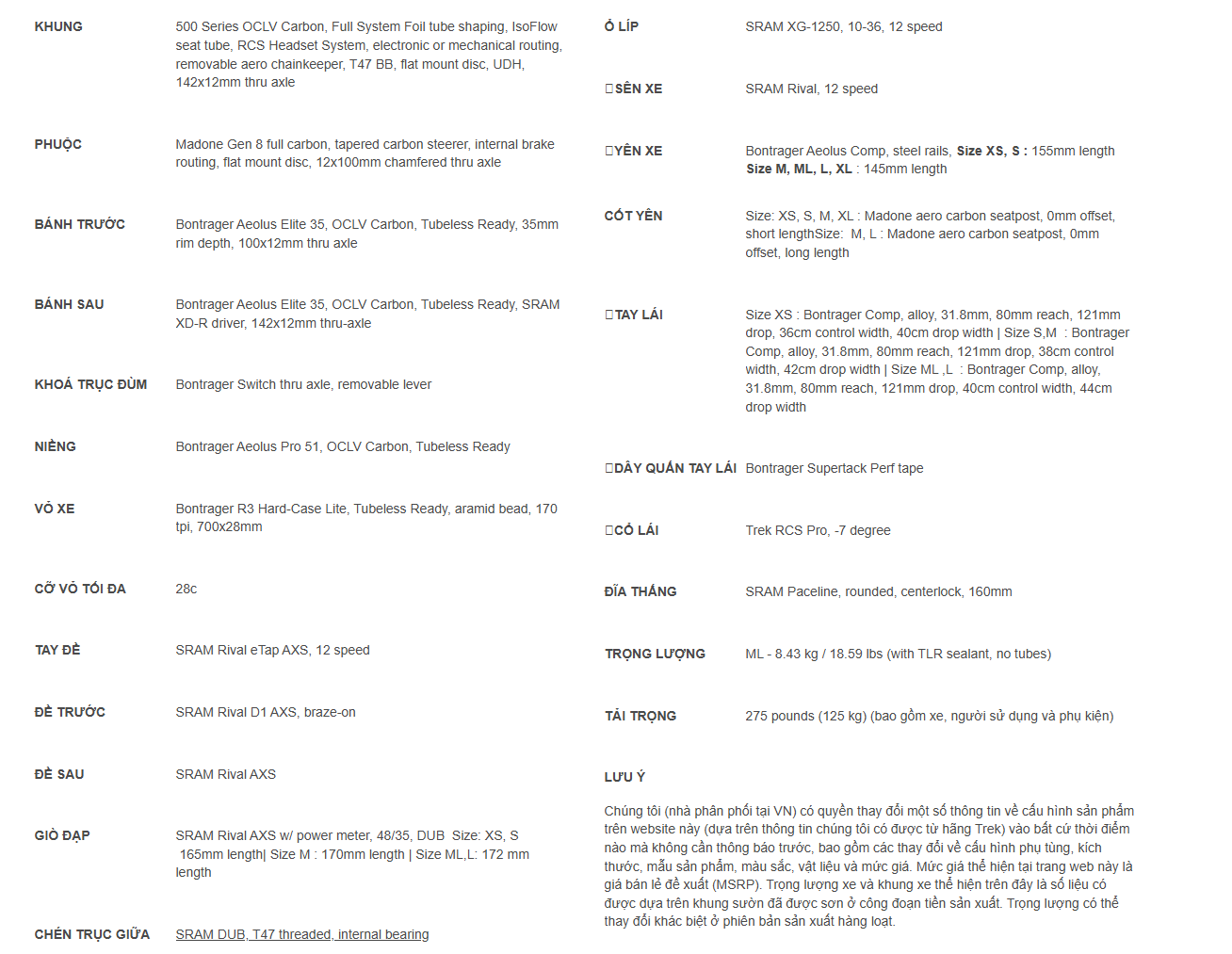 | Cỡ bánh | 700c | 700c | 700c | 700c | 700c | 700c | 700c | |