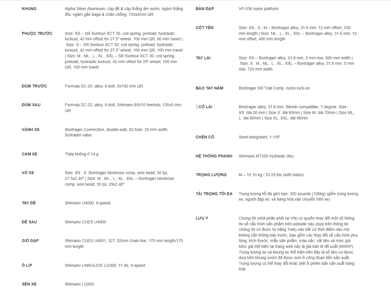 Marlin 5 là mẫu xe đạp đa năng cho nhu cầu đi lại hàng ngày, phù hợp hoàn hảo cho những chuyến phiêu lưu cả trên đường mòn lẫn đường phố. Xe sở hữu khung sườn tối ưu cho địa hình kết hợp cùng phuộc nhún giảm xóc, bộ truyền động Shimano CUES 9 tốc độ và các điểm gắn giá đèo hàng, chân chống tiện lợi. Đây là lựa chọn lý tưởng cho những người mới tập đi địa hình hoặc bất kỳ ai đang tìm kiếm một chiếc xe đi làm thoải mái, ổn định với sự cứng cáp đặc trưng của một chiếc xe đạp địa hình thực thụ.